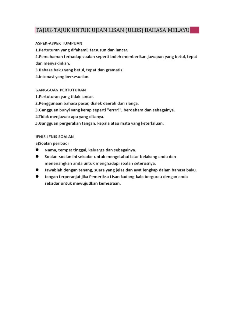 Senarai tajuk ujian lisan berasaskan sekolah ulbs bahasa melayu spm. Contoh soalan, cadangan jawapan, ramalan, panduan, .